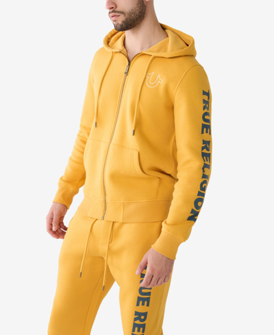 True Religion Brand Jeans Men s Antique Zip Up Logo Hoody Mineral Yellow Medium at Amazon Men s Clothing store Very well made.
