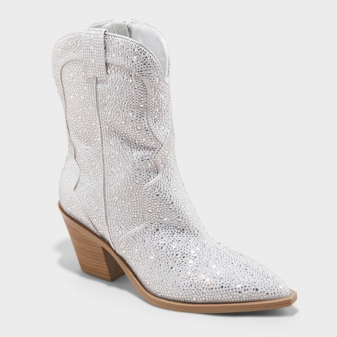 Women s Jacey Rhinestone Western Ankle Boots Universal Thread Silver Target Very well made.