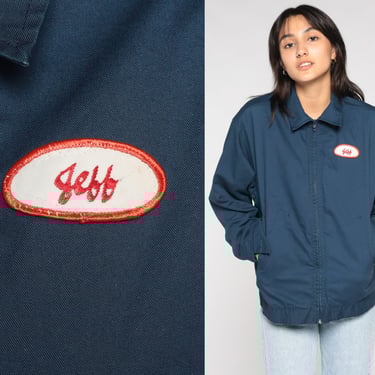 Navy Blue Uniform Jacket 90s Workwear Jacket Jeff Name Patch Shop Exile Tucson AZ Very well made.