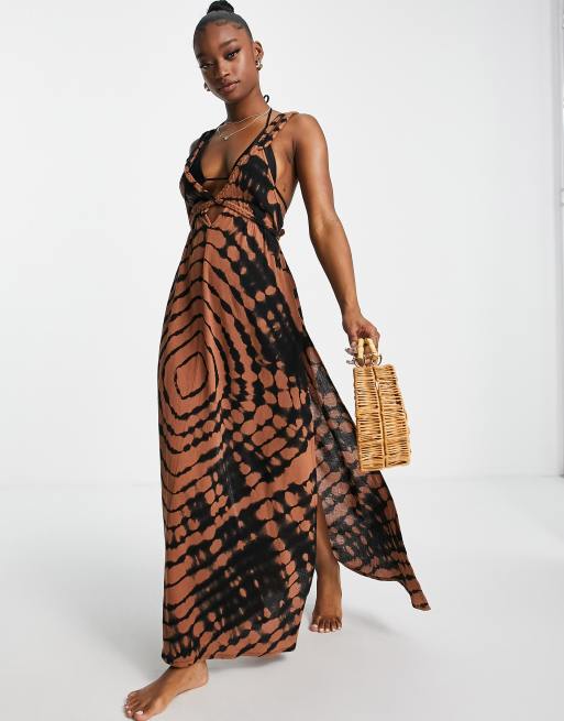 ASOS DESIGN Robe de plage longueur mollet effet tie dye a bretelles et lacets dans le dos Very well made.