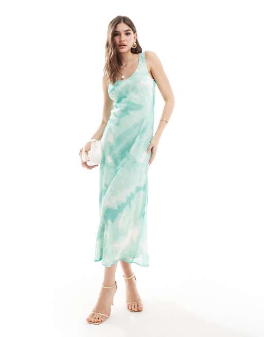 ASOS DESIGN Robe nuisette mi longue a encolure degagee et imprime tie dye en mousseline Very well made.
